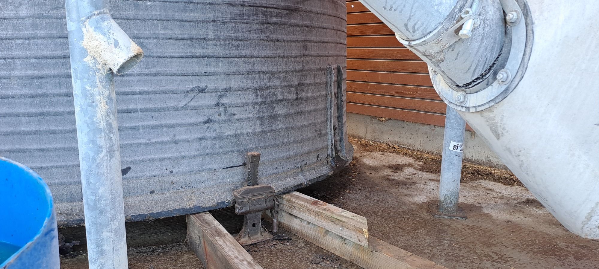 Bei einem Landwirtschaftsbetrieb steht dieser PE Behälter aus Wickelrohr. Der Durchmesser beträgt drei Meter, seine Höhe ist nicht bekannt, nur die Chemikalien Füllmenge ist maximal 30.000 Liter. Hier dient Wasser zur Anmischung von Stickstoff Flüssigdünger und dem Düngemittel Auftragen mit Landtechnik Sprühgeräten an Schleppern auf Felder zur Pflanzenproduktion.